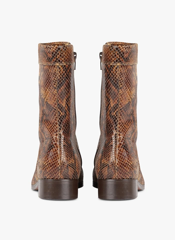 Bottines en cuir imprimé python by Soeur pour Femme.