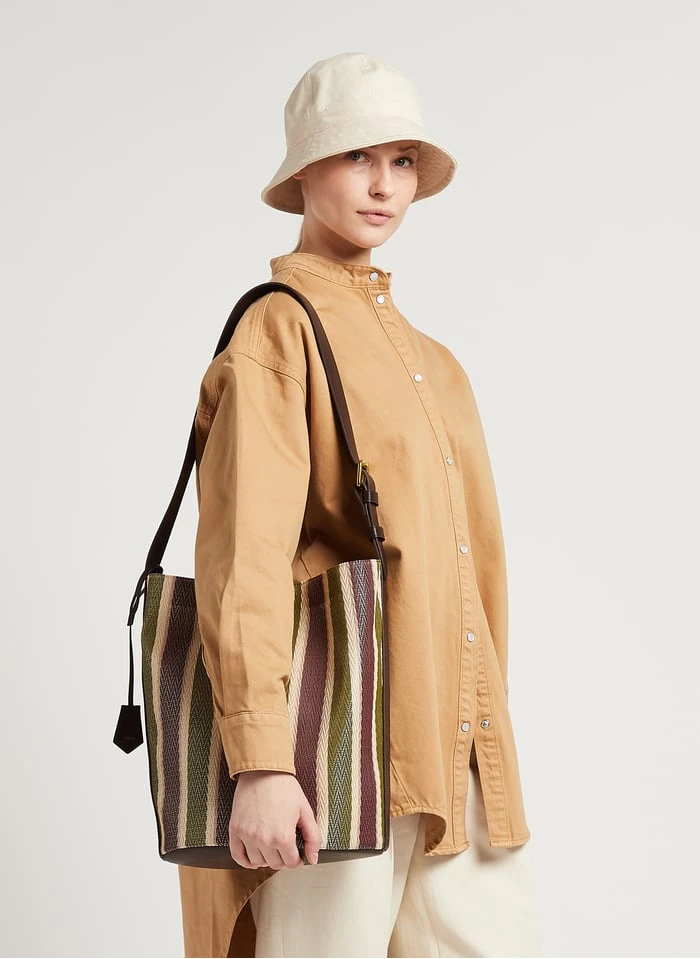 Sac seau rayé en cuir et toile by Soeur pour Femme.