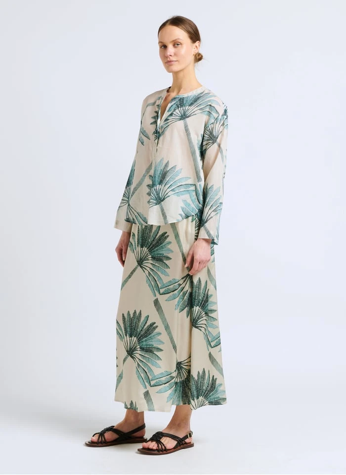 Ce modèle est présenté avec Chemise imprimée en coton by DIEGA, Jupe mi-longue imprimée by DIEGA