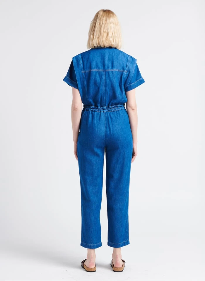 Ce modèle est présenté avec Combinaison col montant en coton by BELLEPIECE